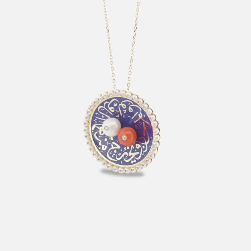 Inspired by the promise in Surah Rahman, “From both seas come pearls and coral” (Verse 22), this piece is the most vibrant part of the Miracles Collection. The 18-karat gold and select diamonds meet the warmth of the central natural coral stone, bringing art to your neck.