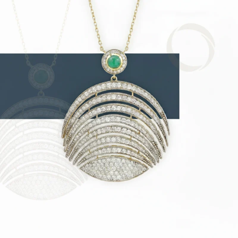 Nature’s two most noble stones, diamond and emerald, tell a story of “splendor” with the warmth of 18K Gold. The depth created by the intertwined circular forms combines with the infinite sparkle of the diamonds to greet the serene green of the central emerald. It is not just a piece of jewelry, but a work of art you will wear around your neck.