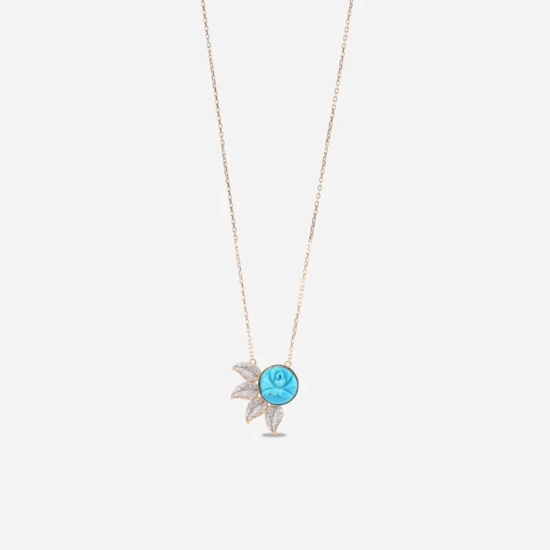 The blue rose at the center of the necklace gains a deep brilliance thanks to the diamonds placed around it using the micro-pavé technique. The fine craftsmanship unique to the Precious Touch Collection ensures that the necklace is not just an accessory, but an artistic expression. The serenity of blue, the warmth of gold, and the splendor of diamonds come together to let you wear a unique story around your neck. Pushing the boundaries of elegance in every detail, this piece is one of the finest examples of modern jewelry design.