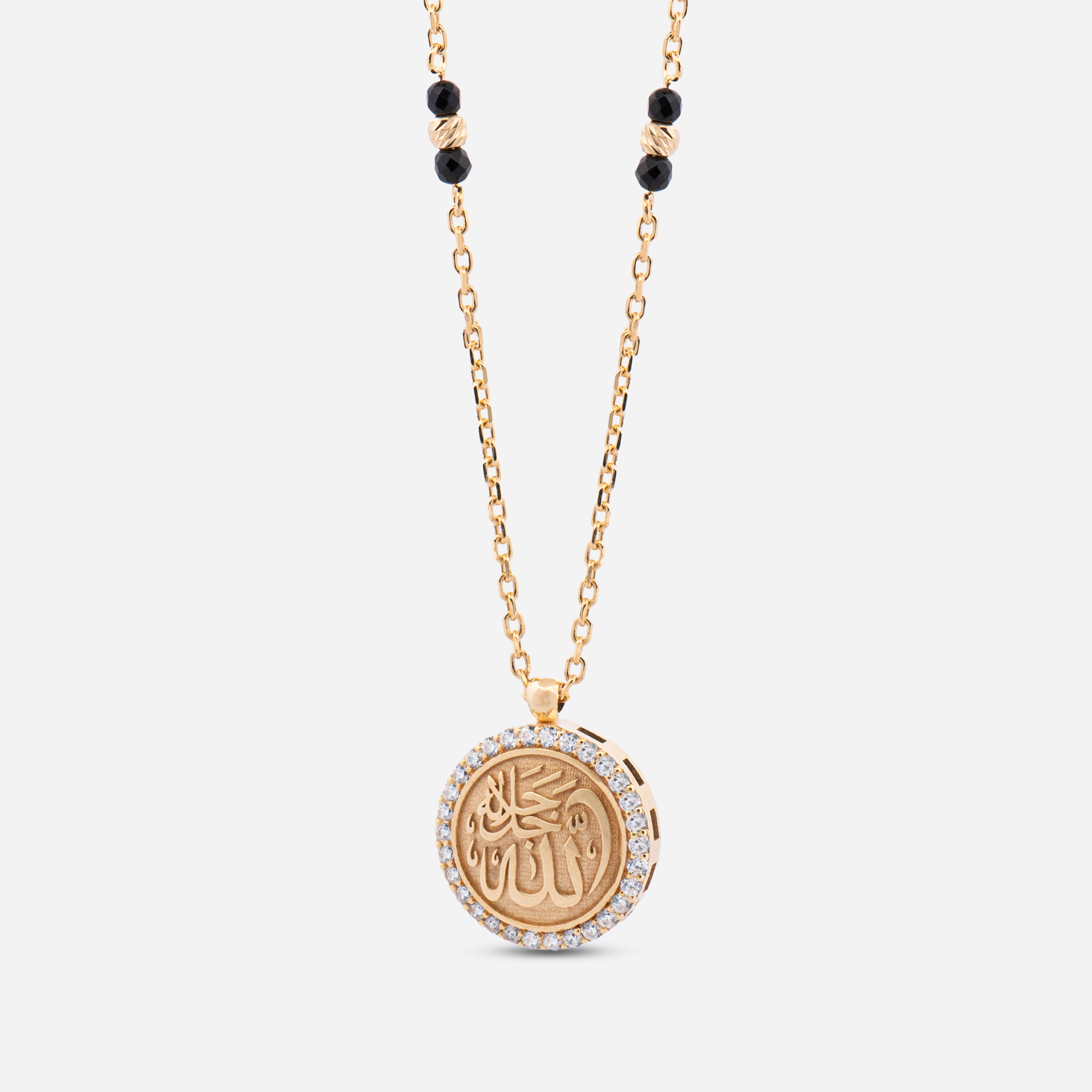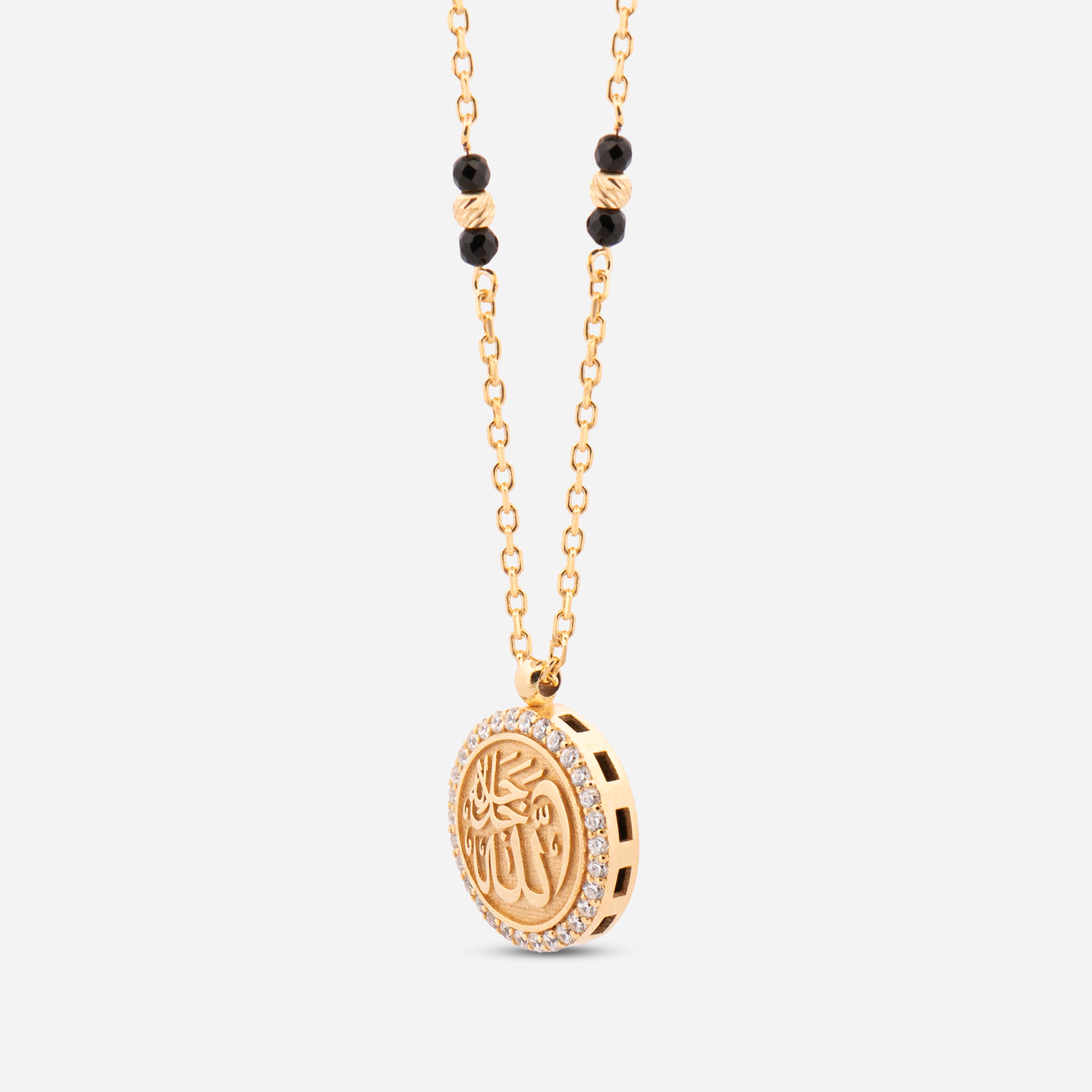 925 Sterling Silver Gold Plated Lafzatullah Round Shape Kaaba Covered Necklace