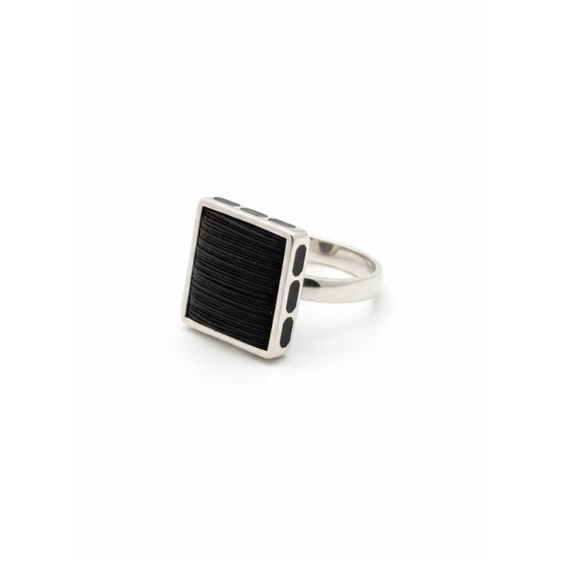 925 Sterling Silver Square Kabe Covered Ring