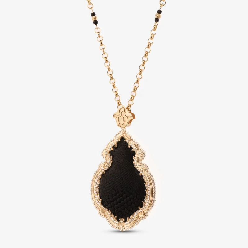 Each necklace is meticulously crafted by our master artisans. By delicately working pure 925 sterling silver, we have created a unique touch with the elegant lines of the motifs. The carefully placed sparkling stones add extra elegance to the necklace while reflecting the quality of our craftsmanship in the details. Kiswah Jewellery offers originality and superior quality standards in every detail. A dazzling gold plating option is also available.