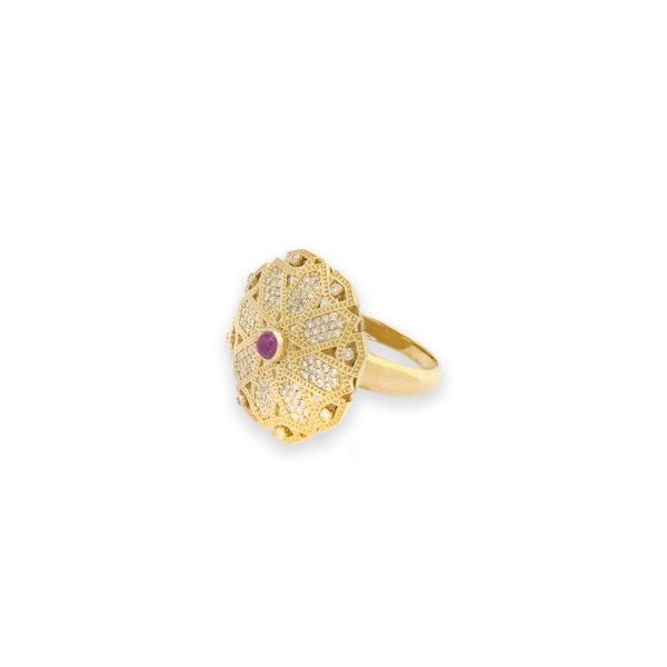 18K Gold Palace Flower Ruby Ring with Diamonds