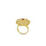 The ruby at the center of the ring symbolizes passion and courage, while the magnificent dome formed by the diamonds reflects the power and permanence of these emotions. This ring is not just a piece of jewelry, but also an expression of spiritual power and love.