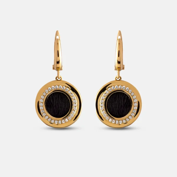 18K Gold Round Patterned Kaaba Cover Earrings with Diamonds