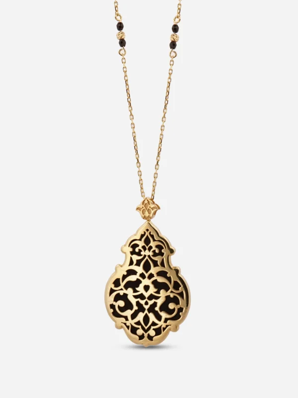 925 Ayar Altın Kaplama Gümüş Siyah Mineli Ahenk Kolye