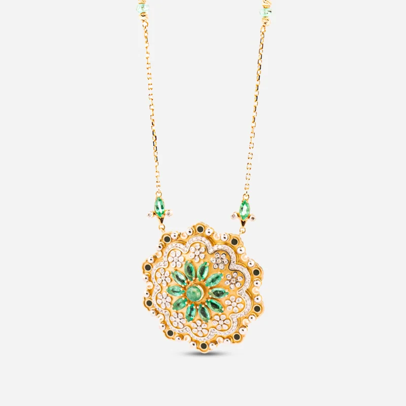 18 Ayar Altın Bol Pırlantalı Zümrütlü Gevher Şad Kolye