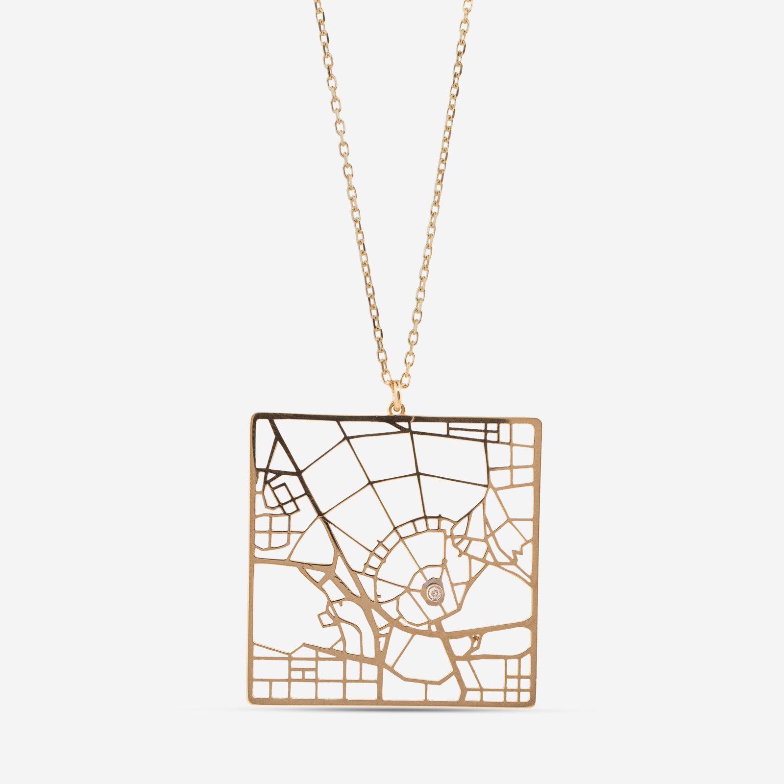 Ahenk Ağı Kolyesi, doğanın en zarif mimarilerinden olan örümcek ağının kusursuz simetrisinden ve içindeki geometrik uyumdan ilham almıştır. Alt alta dizilmiş iki dairesel (çember) motiften oluşan bu kolye, hassas işçiliği ve zengin renk paletiyle öne çıkar.