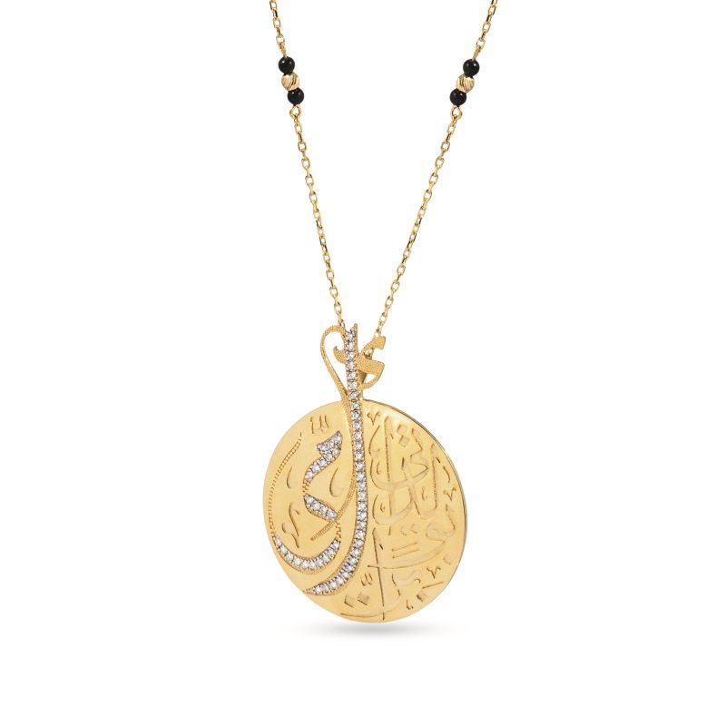 Yüksek kalitedeki 18 ayar altından üretilen bu kolye, stilinde klasik bir zarafet, kültürel bir miras ve sanatsal bir estetik arayanlar için tasarlanmış, zamansız bir koleksiyon parçasıdır.