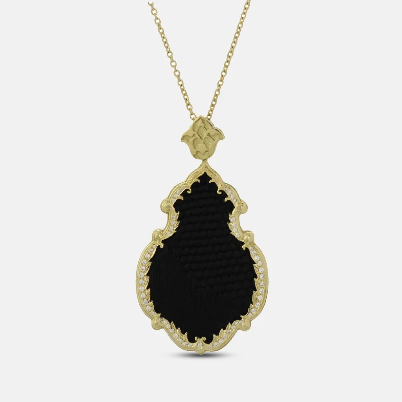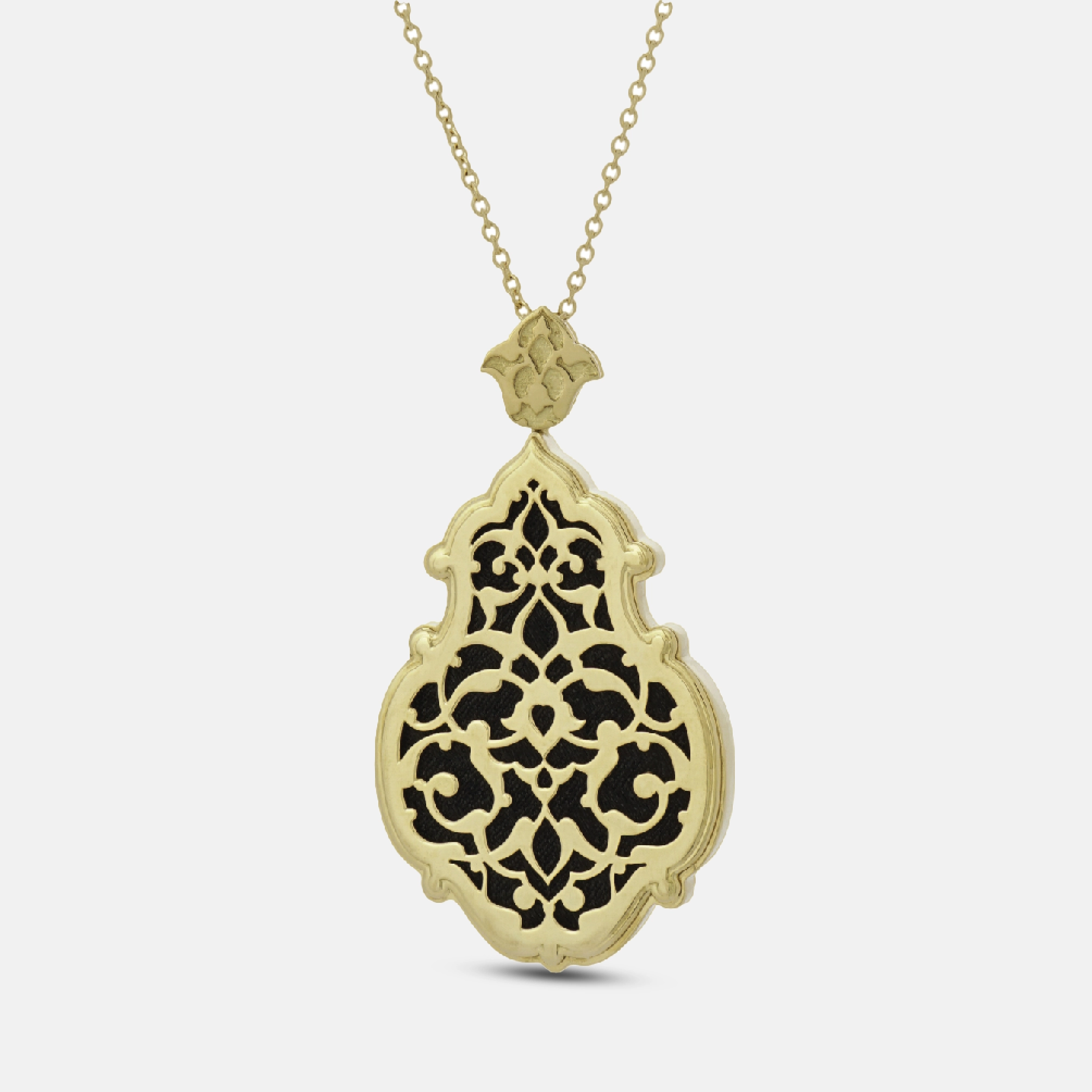 Arabian Koleksiyonu pırlanta mıhlamalı sarmal motifli 18 ayar altın kolye tasarımı
