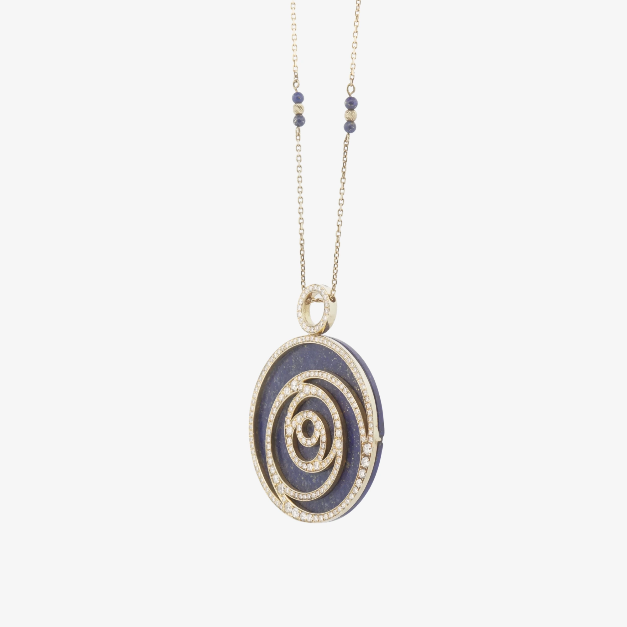 Modern Gül Lapis Kolye, doğanın en derin renklerinden ilham alan, sanatsal ve mistik bir tasarımdır. Kolyenin dairesel formu, sonsuzluğu ve kozmik enerjiyi sembolize eden bir spirali temsil eder.