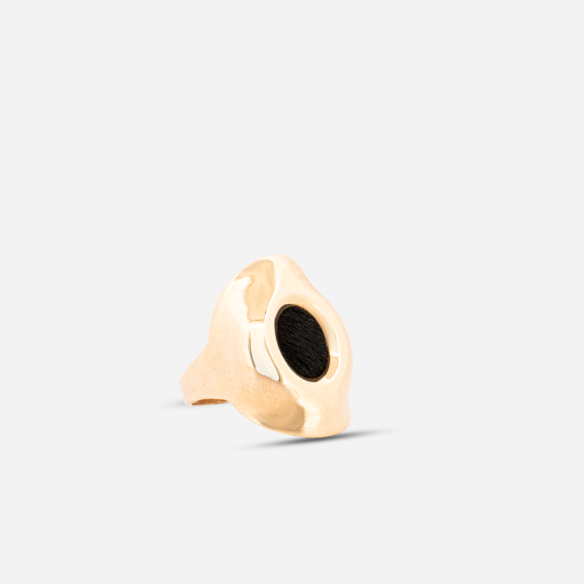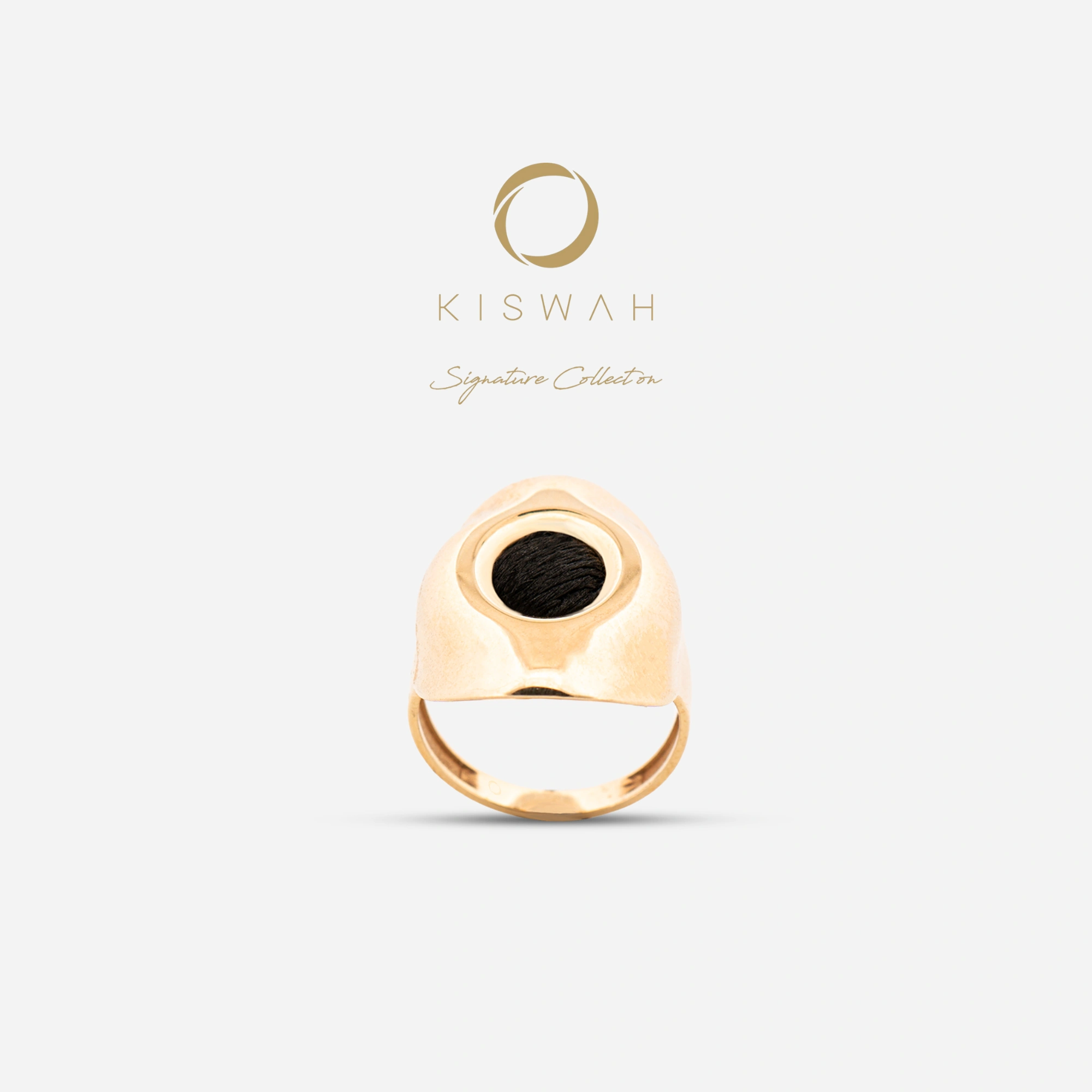 Kiswah Heritage’ın tasarım yolculuğunda “Esved”, hem bir rengin hem de bir duruşun temsilcisidir. 925 Ayar Gümüş Kabe Örtülü Esved Yüzük, geleneksel çizgilerin dışına çıkarak mirası modern ve organik bir formla yeniden tanımlıyor. Kolye ucunun akışkan ve dalgalı yapısı, ışığı farklı açılardan yansıtarak merkezindeki siyah dokunun derinliğini ön plana çıkarır.
