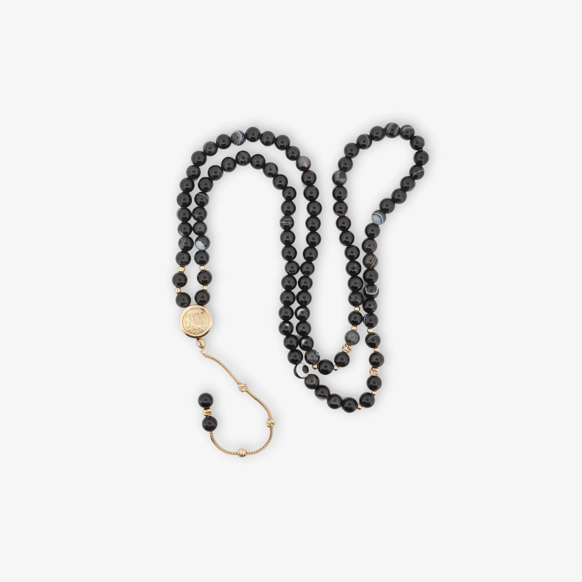 925 Ayar Gümüş Siyah Akik Kâbe Örtülü Vavlı Tesbih