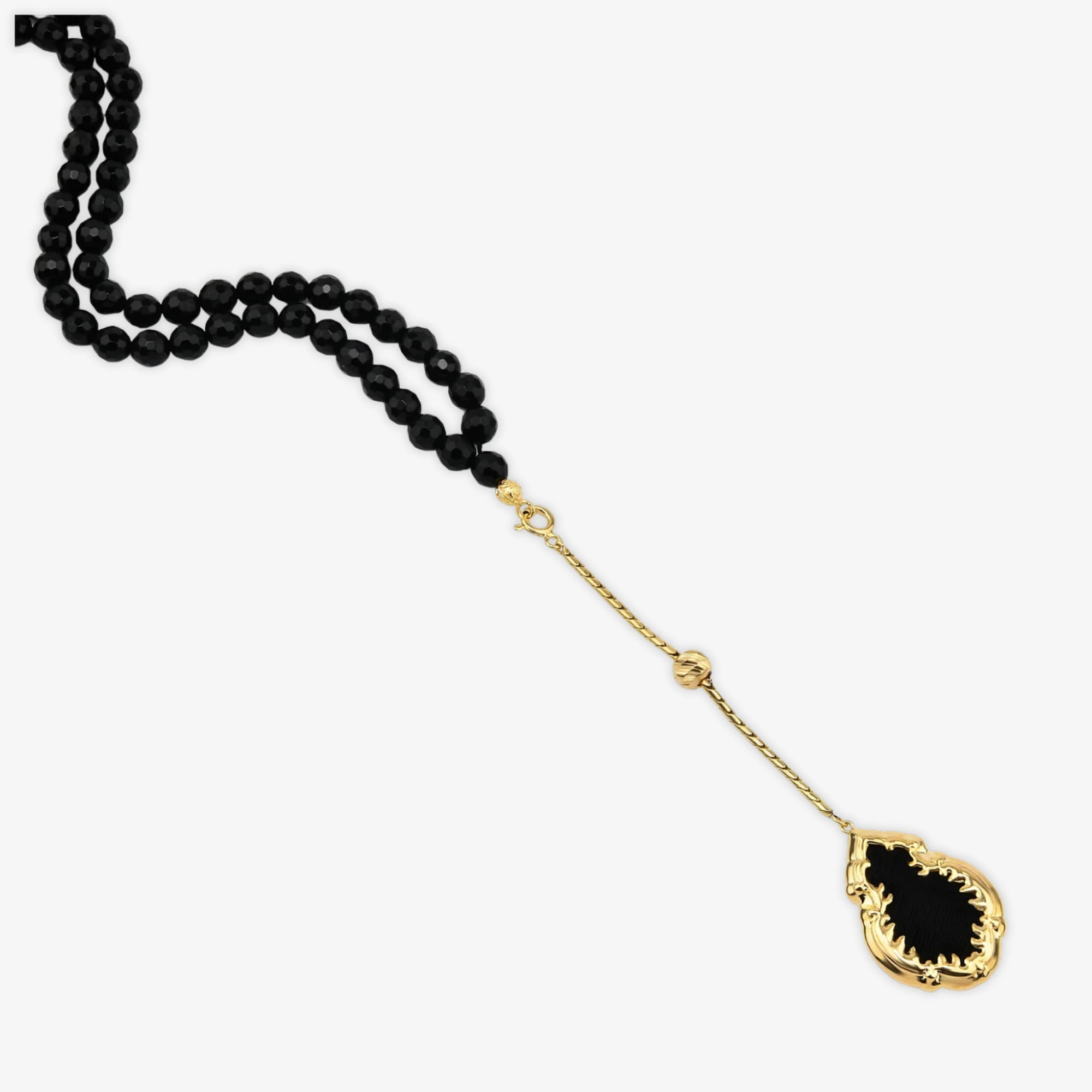 925K Altın Kaplama Kandil Kabe Örtülü 99’lu Oniks Tesbih