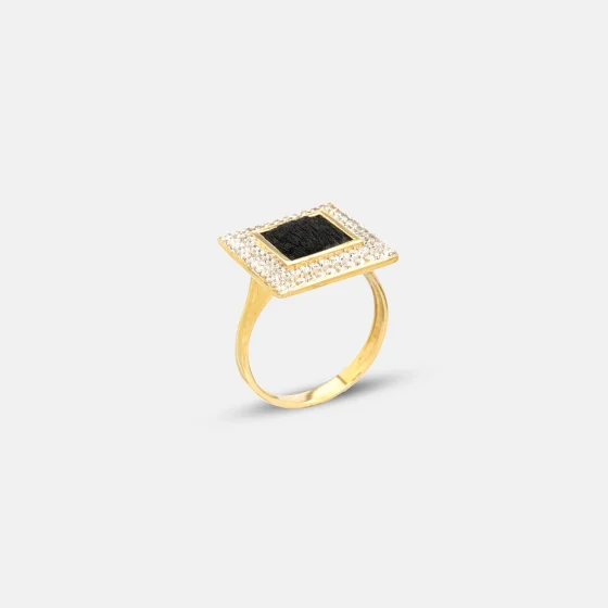 18 Ayar Altın Parlak Zirkon Taşlı Kare Yüzük