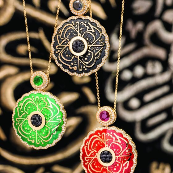 admin2025-11-03T07:04:59+00:00Kiswah, Mekke'deki Kâbe-i Şerif'i örten, siyah ipekten dokunmuş eşsiz bir örtüdür. Kisve-i Şerif adıyla da anılan bu örtü, yüzyıllardır süregelen İslami sanat ve yüksek zanaat geleneğinin somut bir örneğidir. Üzerindeki el işçiliği altın ve gümüş işlemeler, Kiswah'a olağanüstü bir sanatsal ve tarihi değer katar. Koleksiyonlarımız, bu görsel mirası modern ve lüks mücevher formunda sizlere sunmaktadır.
